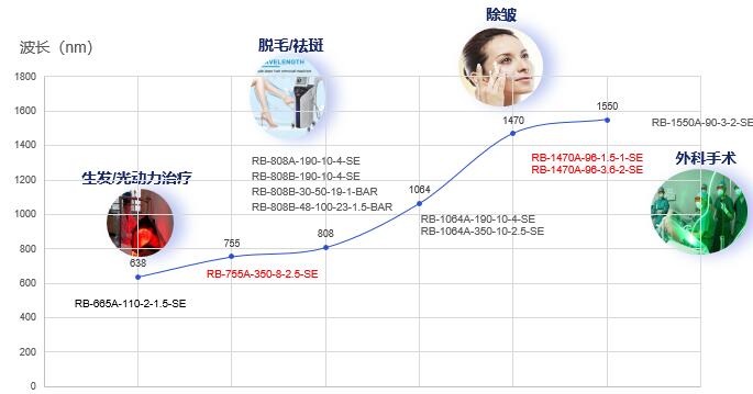 憑借在工業(yè)、顯示、科研等領(lǐng)域積累的豐富經(jīng)驗(yàn)和成功案例,瑞波光電在醫(yī)美領(lǐng)域也開發(fā)出了665nm,755nm,808nm,940nm,1064nm,1470nm,1550nm等單管芯片及巴條,成為目前市場上提供最全醫(yī)美產(chǎn)品的芯片廠商。且665nm、1470nm芯片性能均達(dá)到世界領(lǐng)先水平。