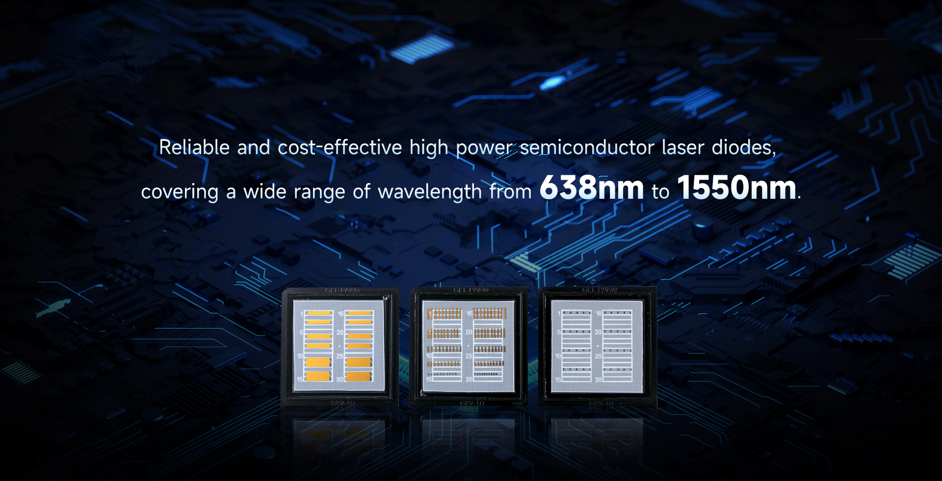 Combined with advanced technologies such as asymmetric waveguide structure design, large optical cavity design, quantum well structure optimization, and cavity surface passivation, it provides high-reliability and cost-effective edge-emitting (EEL) high-power semiconductor laser chips (including single-tube chips and Bars). High power, high beam quality and low cost can be achieved with a very high level of reliability.
