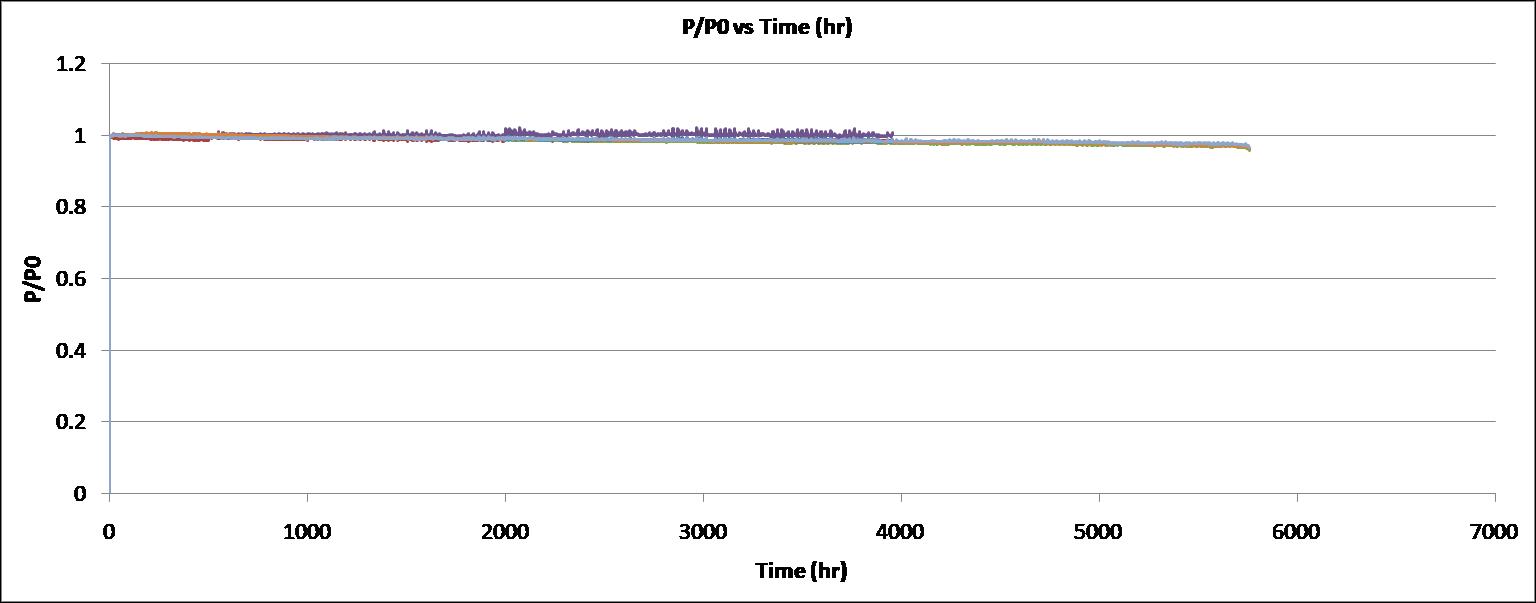 圖2:808nm 190?m發(fā)光區(qū)域?qū)挾取?mm腔長(zhǎng)的芯片,封裝為COS后在10W連續(xù)輸出功率下的長(zhǎng)期老化測(cè)試情況, 7個(gè)COS器件的老化時(shí)間累計(jì)超過(guò)2.8萬(wàn)器件小時(shí),無(wú)器件失效而且功率穩(wěn)定。該芯片的COD功率超過(guò)18W。
