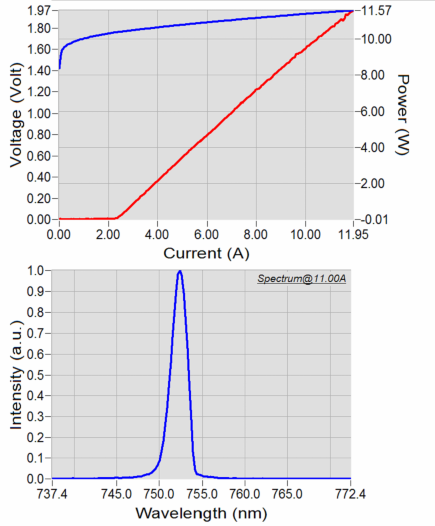 正是看到了激光在醫(yī)療美容市場(chǎng)的廣闊前景,作為國(guó)內(nèi)極少數(shù)研發(fā)和生產(chǎn)大功率激光芯片的專業(yè)供應(yīng)商-深圳瑞波光電子有限公司從2014年就開始研發(fā)醫(yī)療用激光芯片,現(xiàn)開發(fā)出755nm激光芯片,型號(hào)為RB-755A-350-8-2.5-SE,發(fā)光條寬350um,腔長(zhǎng)2.5mm,工作功率8W,光電轉(zhuǎn)換效率42%,工作電壓1.9V。(根據(jù)單管芯片測(cè)試數(shù)據(jù)得到。單管芯片測(cè)試時(shí),以 COS(Chip On Submount)封裝形式,COS 測(cè)試溫度為 25℃,熱阻為 2~3 K/W。)
