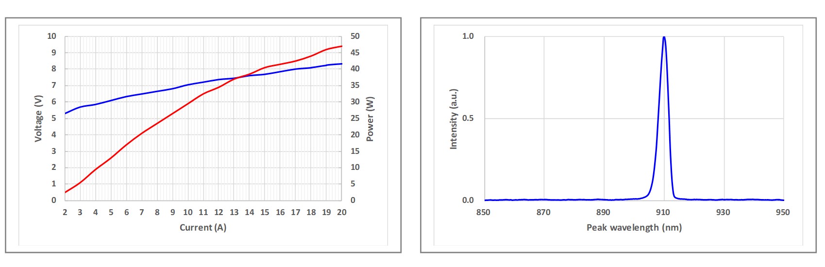 圖3:瑞波光電25W905nm 脈沖式半導(dǎo)體激光芯片的PIV曲線圖