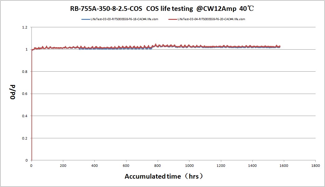 圖5:755nm 芯片壽命測(cè)試曲線(連續(xù)電流)