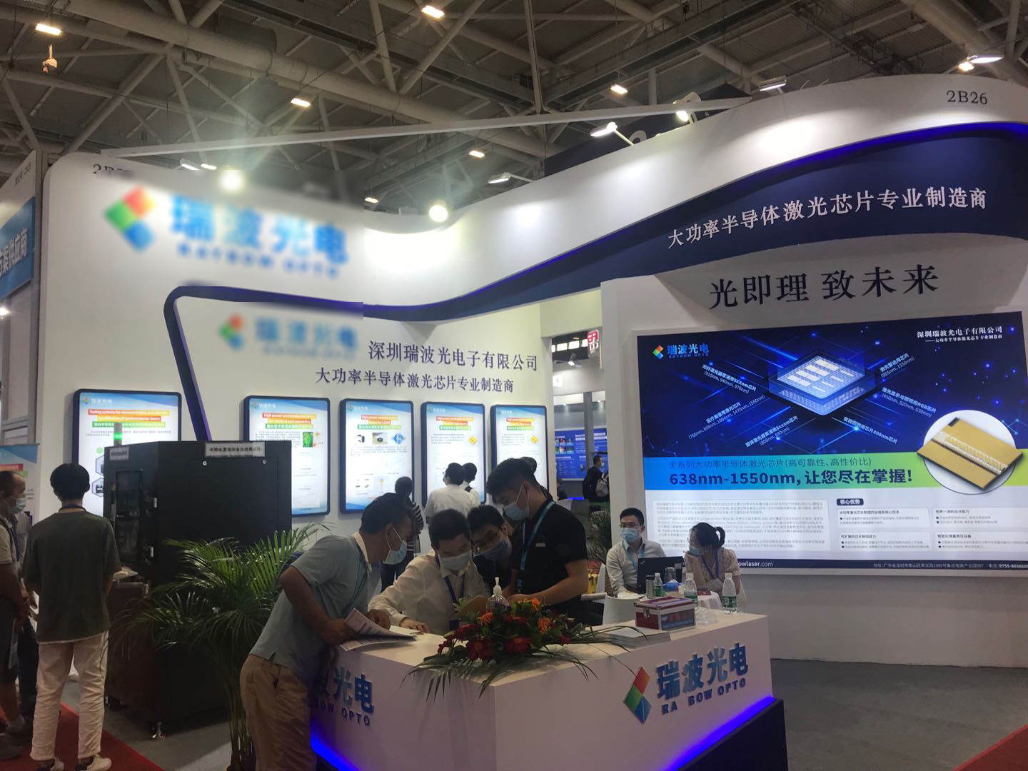 瑞波光電攜應(yīng)用于激光測(cè)距和激光雷達(dá)的905nm 5W~100W脈沖激光芯片、應(yīng)用醫(yī)美行業(yè)的808nm 50W/100W BAR條,1060nm CW 50W和100W bar以及1470nm 1.5W/3W單管芯片和7w Bar條、應(yīng)用于固體激光器泵源的新型808nm/880nm 10W單管芯片,用于泵浦和科研領(lǐng)域的780nm 120W BAR條以及792nm 5w/8w單管芯片,以及新一代COS全自動(dòng)測(cè)試機(jī)等,在2號(hào)展館2B26展臺(tái)亮相,吸引了包括行業(yè)客戶、投資機(jī)構(gòu)、媒體、政府等大量觀眾來訪交流。展出期間,我們接待客戶逾百名,通過深入溝通洽談,達(dá)成一系列有效合作意向。