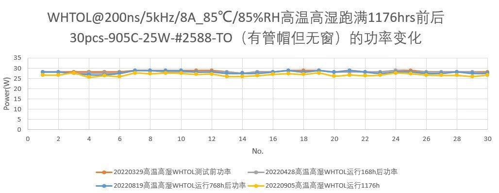 圖2:WHTOL測(cè)試項(xiàng)目的部分?jǐn)?shù)據(jù),芯片產(chǎn)品A,發(fā)光面功率密度41KW/mm2