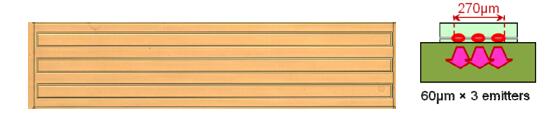 圖 4 三發(fā)光點(diǎn),條寬60μm×3結(jié)構(gòu)