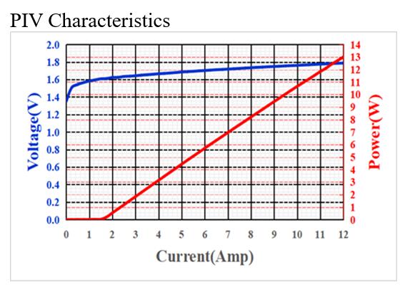 The new 10W 808nm semiconductor laser chip, RB-808B-190-10-4-SE, supports COS packaging, has a 190μm emitter width, a 4mm cavity length, a 58% photoelectric conversion efficiency and a service life of more than 20,000 hours. In addition, the chip also uses new epitaxial structure design and material epitaxy, advanced non-pump window design and preparation technology, dry and wet corrosion combined with self-alignment technology, control the consistency of strip width, especially to ensure high yield under mass production, reduce the cost of laser chip. At the same time, the adoption of new technology has greatly improved the high temperature resistance characteristics, so that it can be in the environment temperature of 60℃ or even higher temperature under the condition of continuous operation.